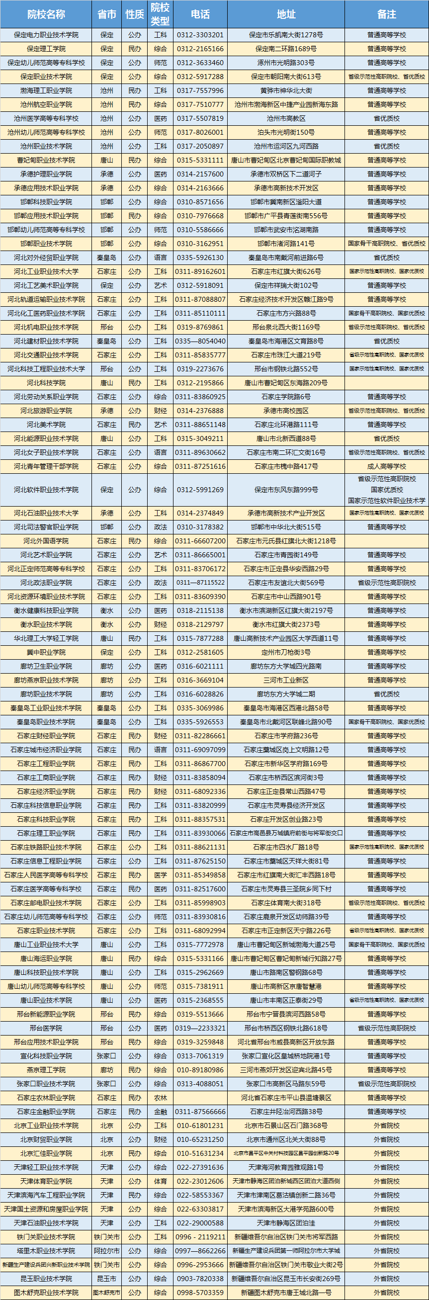 说明:以上院校名单中的省内院校部分,来自河北省教育考试院官网2026年1月7日发布的《2026年河北省高职单招报考须知》附件2:2026年高职单招河北省内招生院校。省外院校名单根据2025年招生院校整理,2026年河北省高职单招最新的省外院校名单以后续官方公布为准。