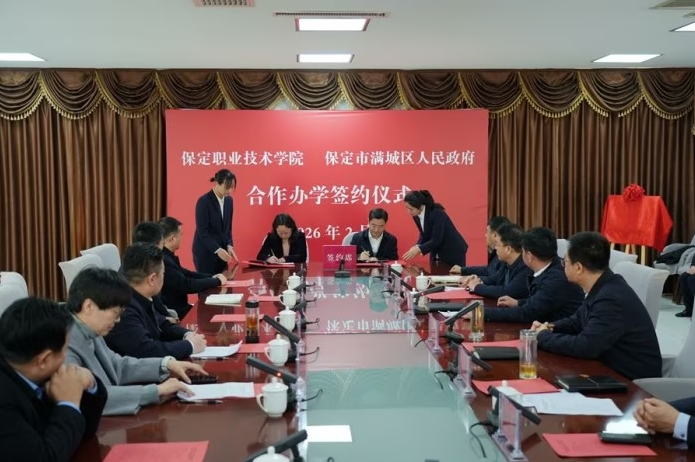 经保定市人民政府批准,保定职业技术学院在满城区设分校区。2月2日,学院与满城区人民政府举行合作办学签约暨分校区揭牌仪式。学院党委书记杨海波出席仪式并致辞。他指出,学院积极贯彻落实党中央、国务院关于“推动有条件地区将高等职业教育资源下沉到市县”的重大决策部署,对接县域特色产业需求,2025年开展下沉县域办学,设曲阳等5个分校区,取得了良好办学成效。为推进下沉县域办学增点扩面,进一步增强学院服务县域发展能力,设立满城分校区,将为满城区电力及新能源高端装备制造、造纸及纸制品两个特色产业集群高质量发展提供高技能人才支撑,助力满城经济社会发展。满城区委书记刘永胜在致辞中表示,保定职业技术学院满城校区的设立将开启校地双方携手共进、合作共赢的崭新征程,为深化产教融合、促进产业升级提供了有力抓手。这是一次政府得人才、学院促发展、学生获机遇、产业强支撑的多方共赢。满城区将全力支持满城校区建设,在政策支持、资源调配等方面给予充分保障,让学校安心办学、教师潜心育人、学生舒心成长,打造校地协同、产教融合的满城典范。